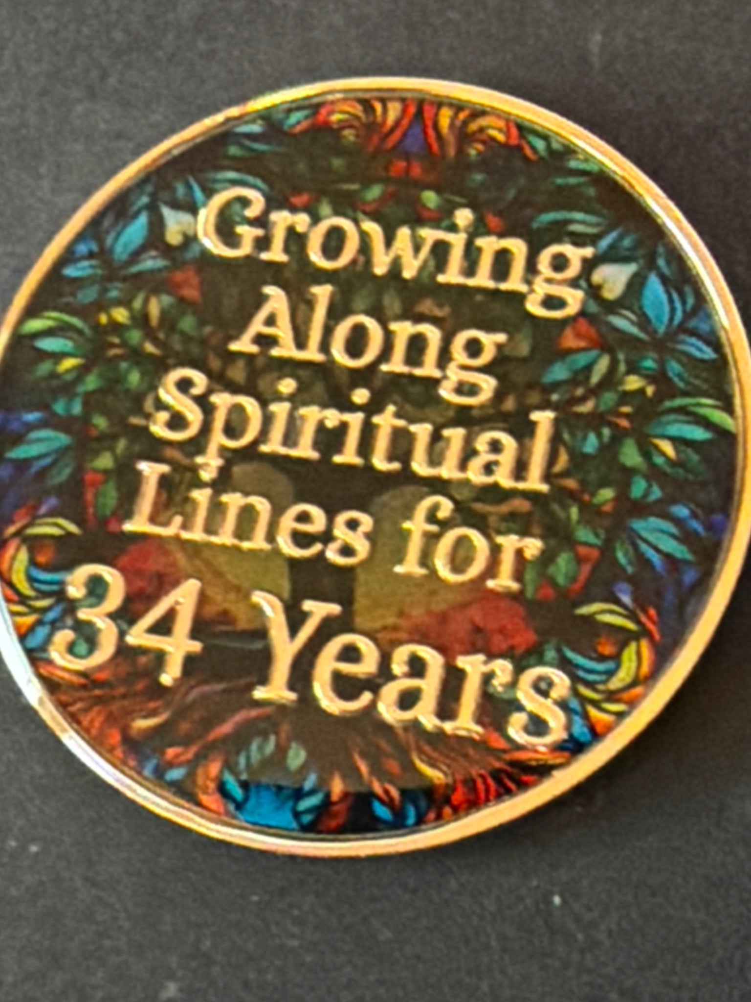 34 Year Multi-Color Tree Of Life Sobriety Medallion AA NA Chip Growing Along Spiritual Lines Back
