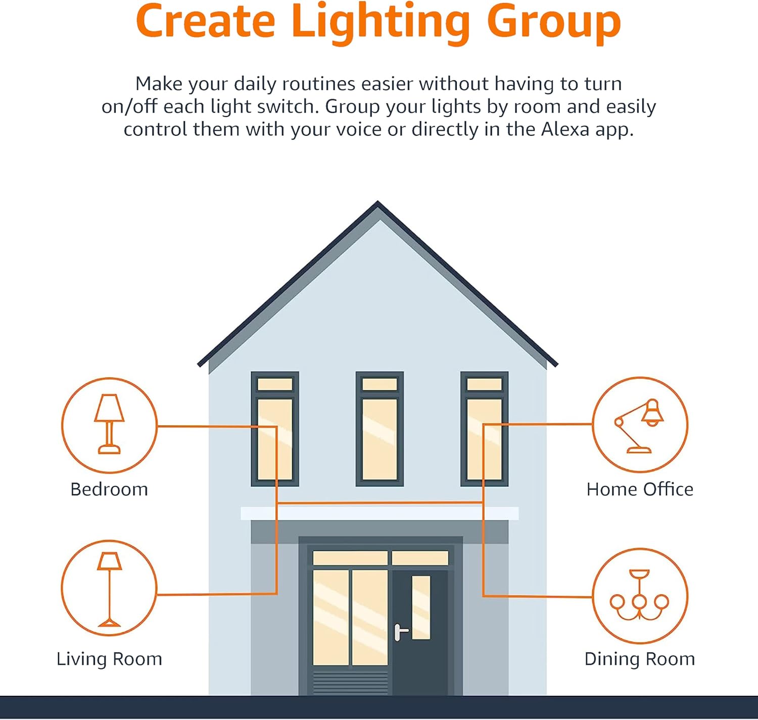 Transform your home lighting with this intelligent A19 LED bulb that seamlessly integrates with Alexa voice control. Delivering 800 lumens of warm 2700K soft white light, it matches the ambiance of traditional 60W incandescent bulbs while consuming just 9W for significant energy savings. The dimmable design lets you adjust brightness to suit any mood or activity. With built-in 2.4 GHz Wi-Fi connectivity and no hub required, setup is straightforward—simply connect directly to your network and start controlling your lights remotely via the Alexa app or voice commands. Ideal for anyone seeking convenient, energy-efficient smart lighting without complicated installation.