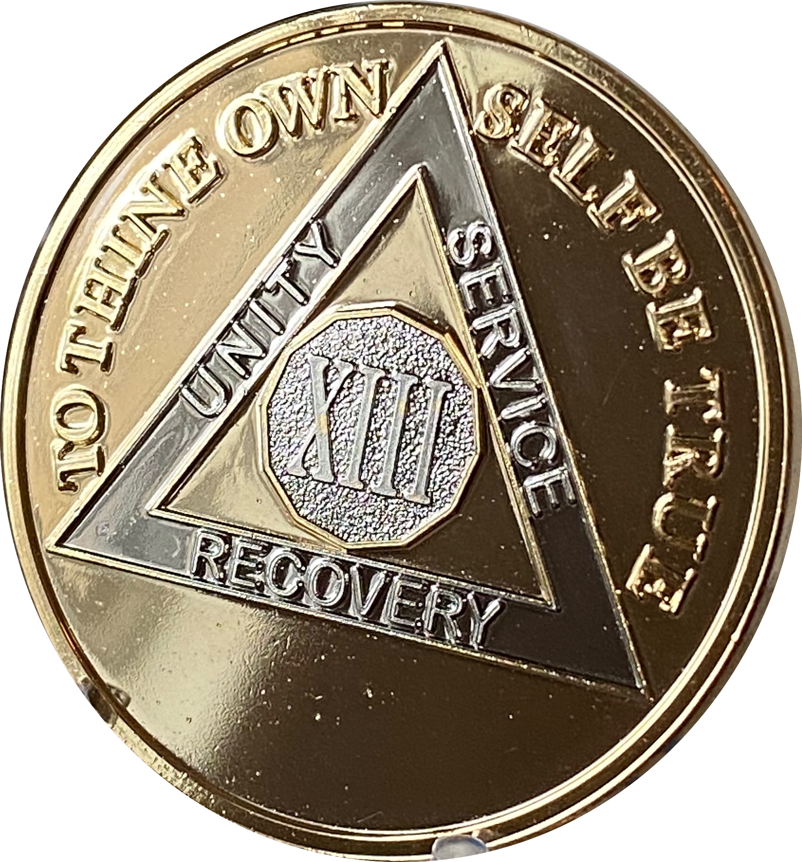 13 Year AA Medallion 22k Gold Plated Premium Sobriety Chip XIII
