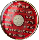 Celebrate your 17 years of sobriety with this 6 Year AA Medallion Mandarin Red Tri-Plate Sobriety Chip. Its glass-like epoxy dome showcases the serene prayer on the back, serving as a constant reminder to stay sober. The tri-plate design adds a touch of elegance to this commemorative piece.