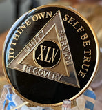45 Year AA Medallion Black Tri-Plate Sobriety Chip