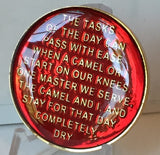 Camel AA Medallion Metallic Mandarin Red Color Tri-Plate Sobriety Chip